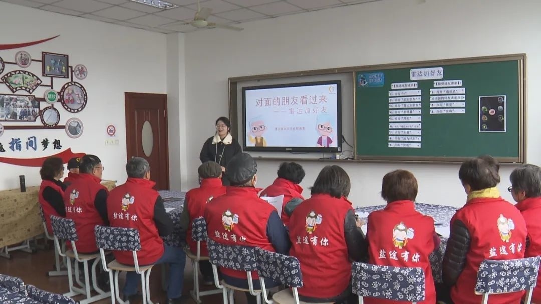 在漕泾镇老年学校的课堂上,老师正在仔细讲解如何通过微信,实现“雷达加好友”功能。参加培训的老年学员们听得津津有味,纷纷掏出自己的手机,根据老师的指导一步步操作。班上年纪最大的周老伯是课堂上的学习积极分子,不一会儿,他就加上了多个好友。如今,79岁的他对智能手机的运用愈发熟练,还缩小了和年轻人的代沟。