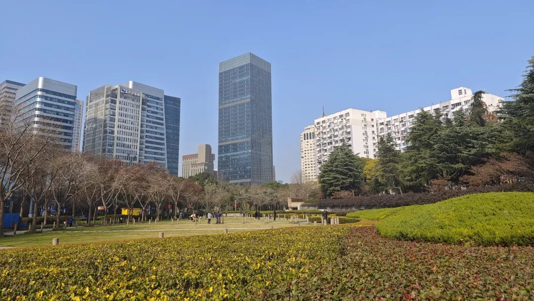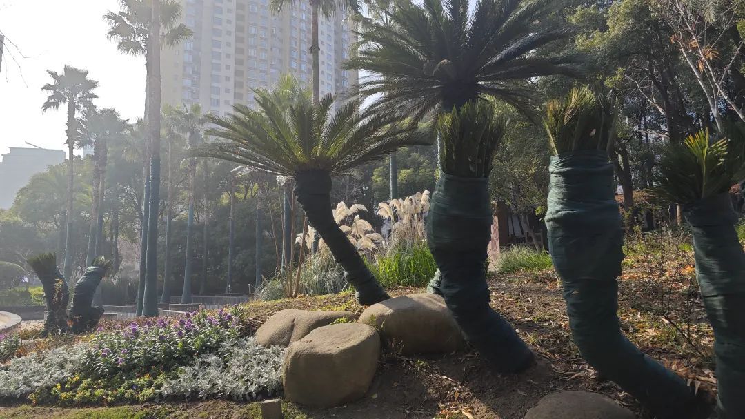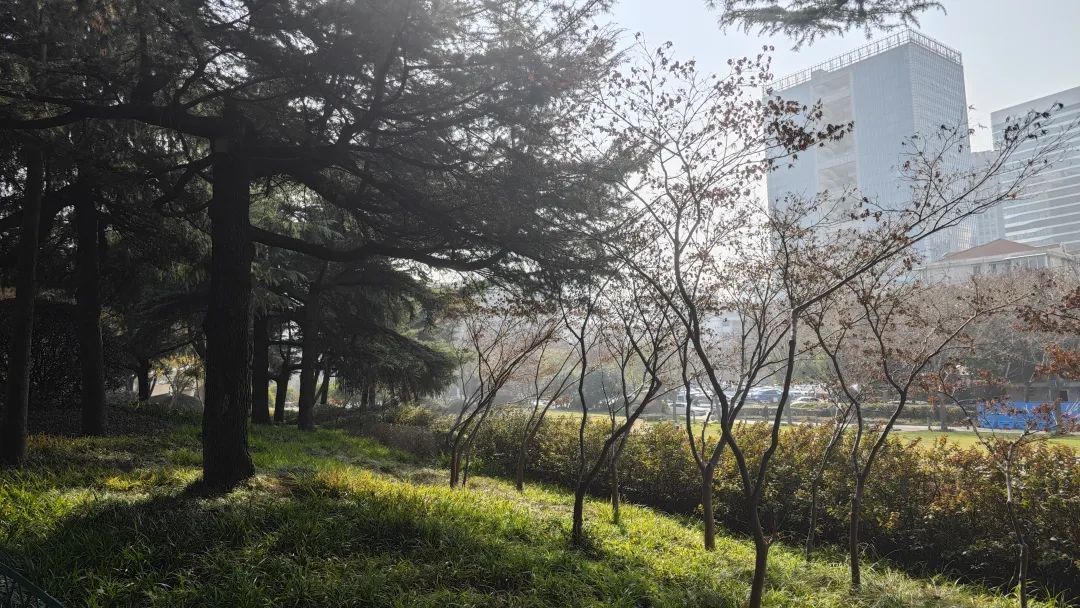 山上种植雪松、银杏、香樟、无患子、榉树、乌桕等高大乔木。