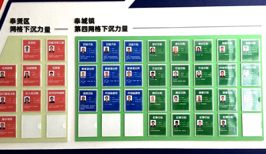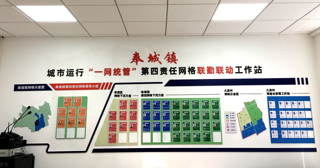 在奉贤区56个责任网格中建立联勤联动指挥工作站作为指挥中枢,充分下沉调动指挥权,将执法、管理、建设等部门的各级处置人员全量配置,集合2000余人处置力量,明确部门与人员工作职责,形成联勤联动工作合力。
