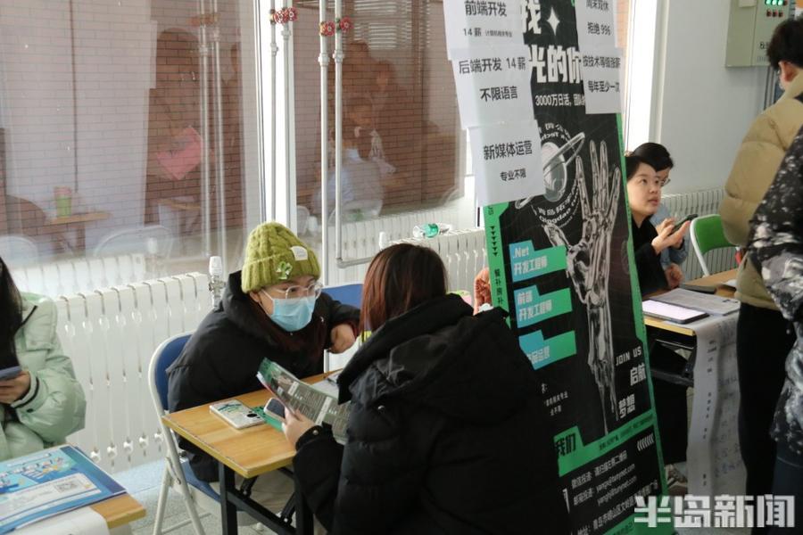“放心大胆签!”“考研成功,不收违约金。”在1月3日上午,青岛理工大学信息与控制工程学院在该校黄岛校区举办的“逐梦•致远”2024年(研后场)就业双选会上,前来招聘的企业招聘经理纷纷给前来应聘的学生送上“定心丸”。