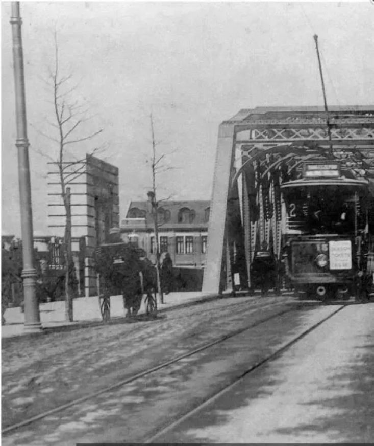 进入了20世纪以后,因为桥上要通电车了,此时外白渡桥再一次地被拆除。这次的重建,整个桥全部使用钢结构构筑而成,上面还罩着钢壳,这让外白渡桥的辨识度立刻就上升了。1907年,外白渡桥正式投入使用。