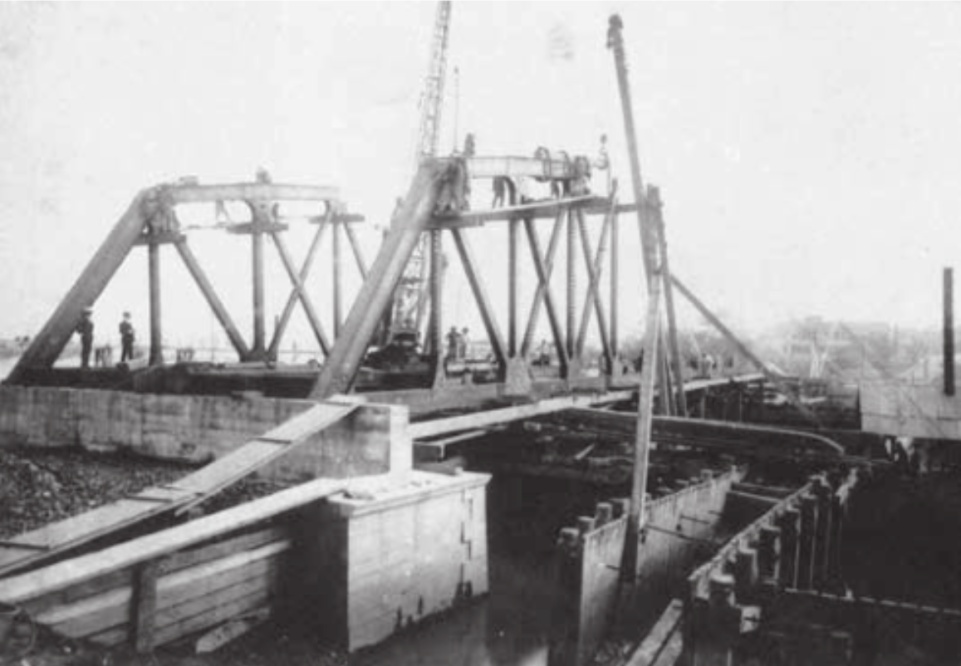 ▲1907年建设中的外白渡桥 & 有轨电车通过外白渡桥