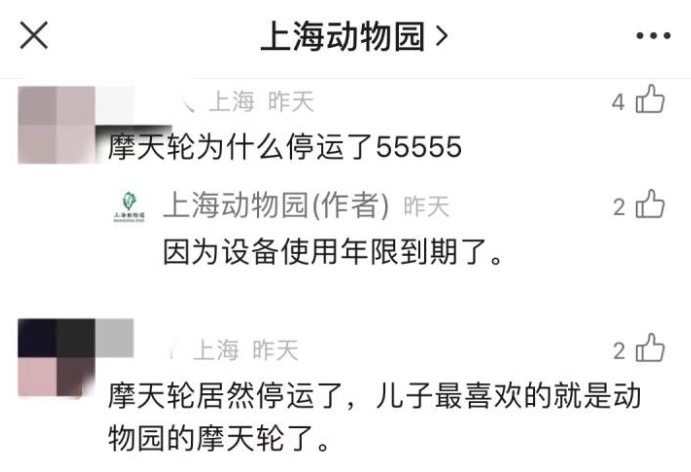 得知摩天轮已经停运,一些市民表示“不舍”,“为什么要停运?”,还有市民说,“儿子最喜欢的就是动物园的摩天轮了”。