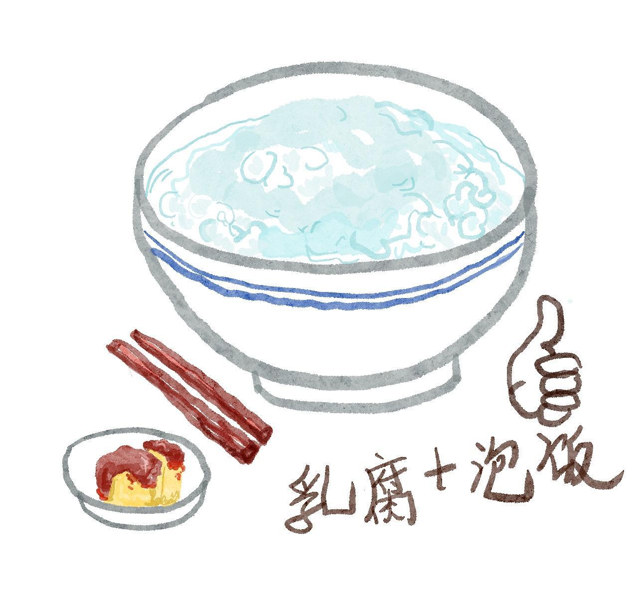 泡饭可是上个世纪九十年代每个上海人家里鼎鼎有名的“快餐”。吃惯了大鱼大肉,天南地北的美食,有时候还是一碗泡饭加两块乳腐来得清闲自在。尤其在肠胃不适身体不好的时候,来碗这个清清爽爽。除了配乳腐,酱瓜、榨菜萝卜干等也是泡饭的黄金搭档。