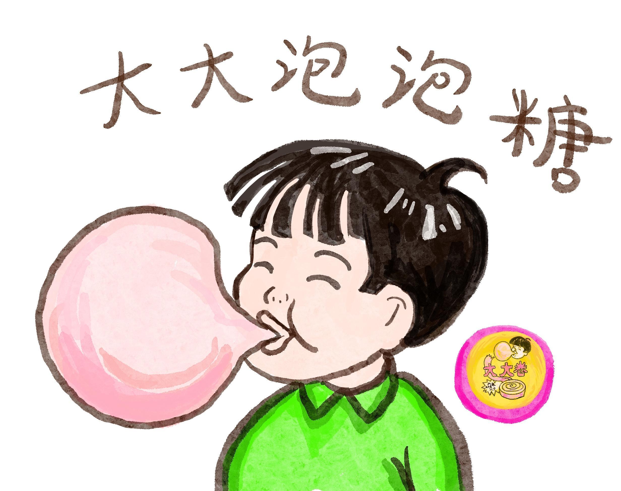 大大泡泡糖,哪个小囡没在小卖部买过这个。粉红明黄的圆盒子,非常有特色的泡泡糖卷,掰下一点放嘴里。课间休息的时候比谁吹的泡泡又大又圆。