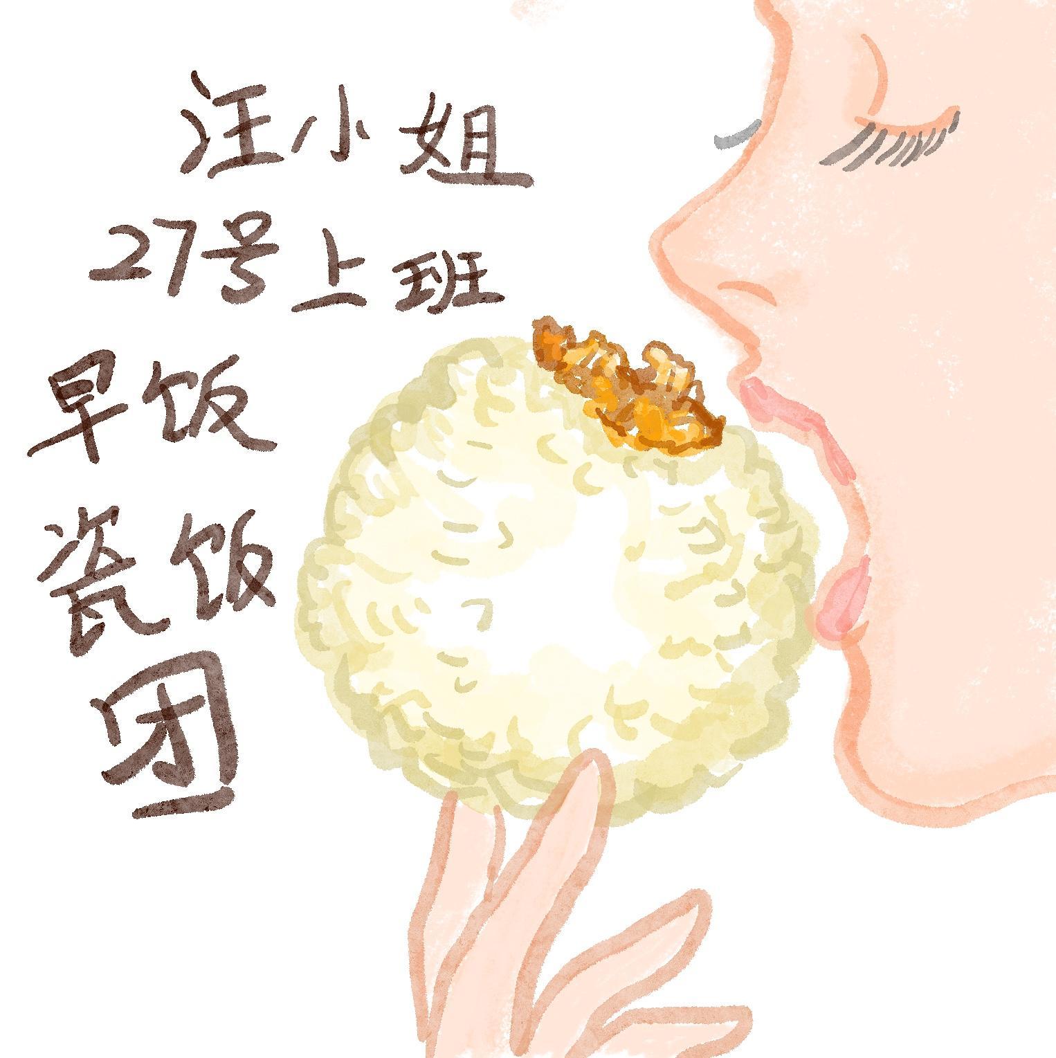 看到唐嫣上班前一大口吃粢饭团,想想自己以前上学路上也是买这个果腹。比拳头还大的稀饭团,里面结实地包裹着一整根油条。整只吃下去,中饭都不想吃了。就是那么实在。