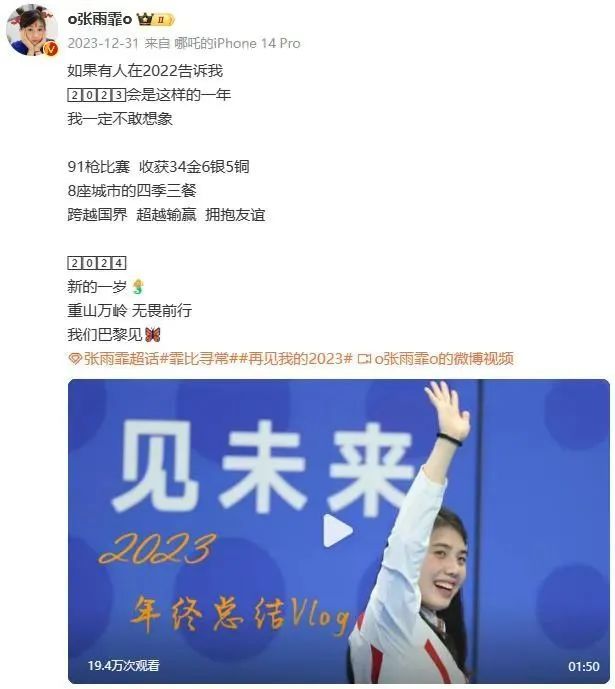 张雨霏在2023年收获颇丰