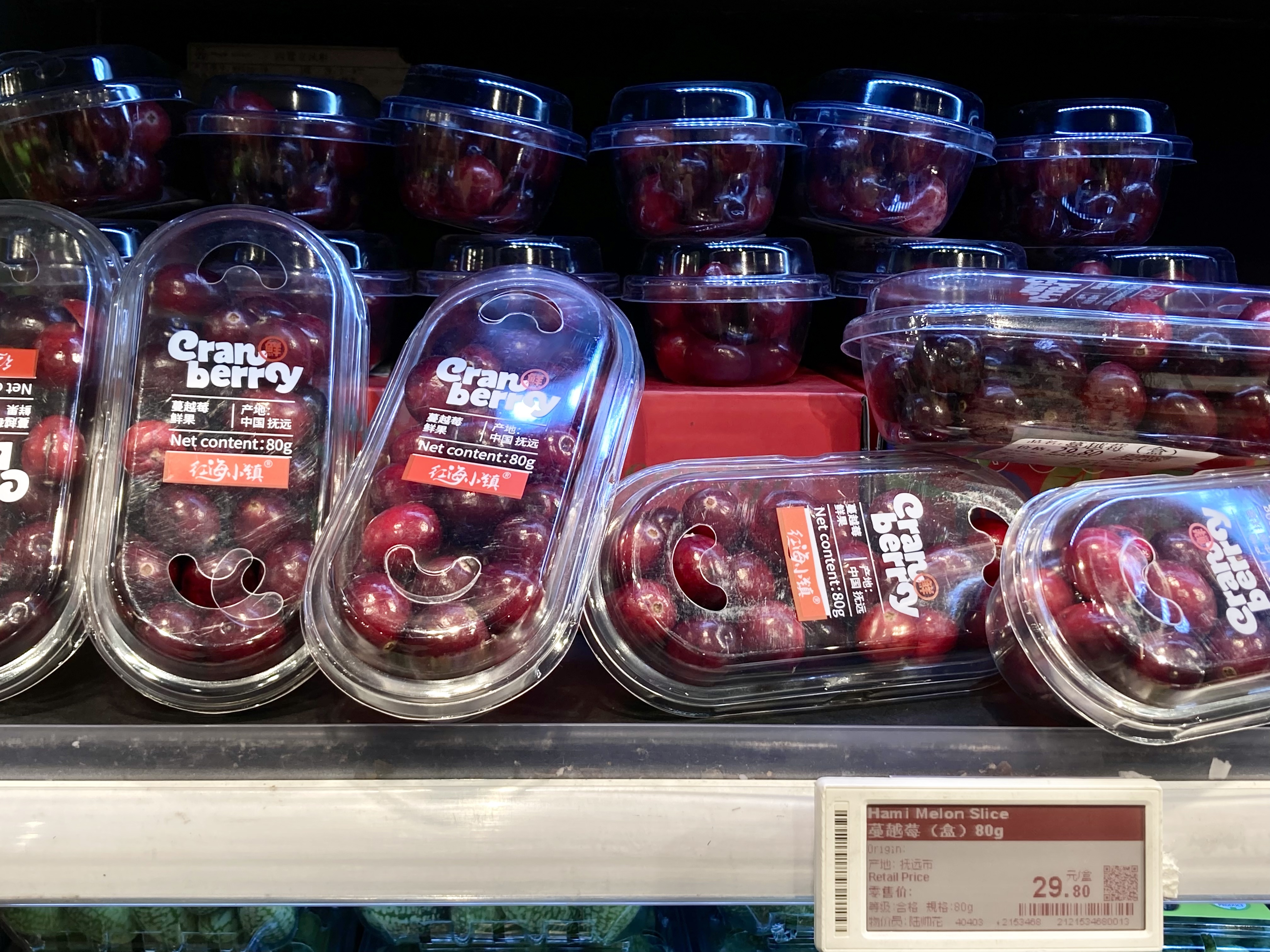 不少上海的网友看着视频里红彤彤的鲜果着实犯了馋:在上海能吃到东北产的新鲜蔓越莓吗?静宝走访了静安寺商圈的超市和水果店,在静安嘉里北区商场B2层的Ole精品超市找到了~
