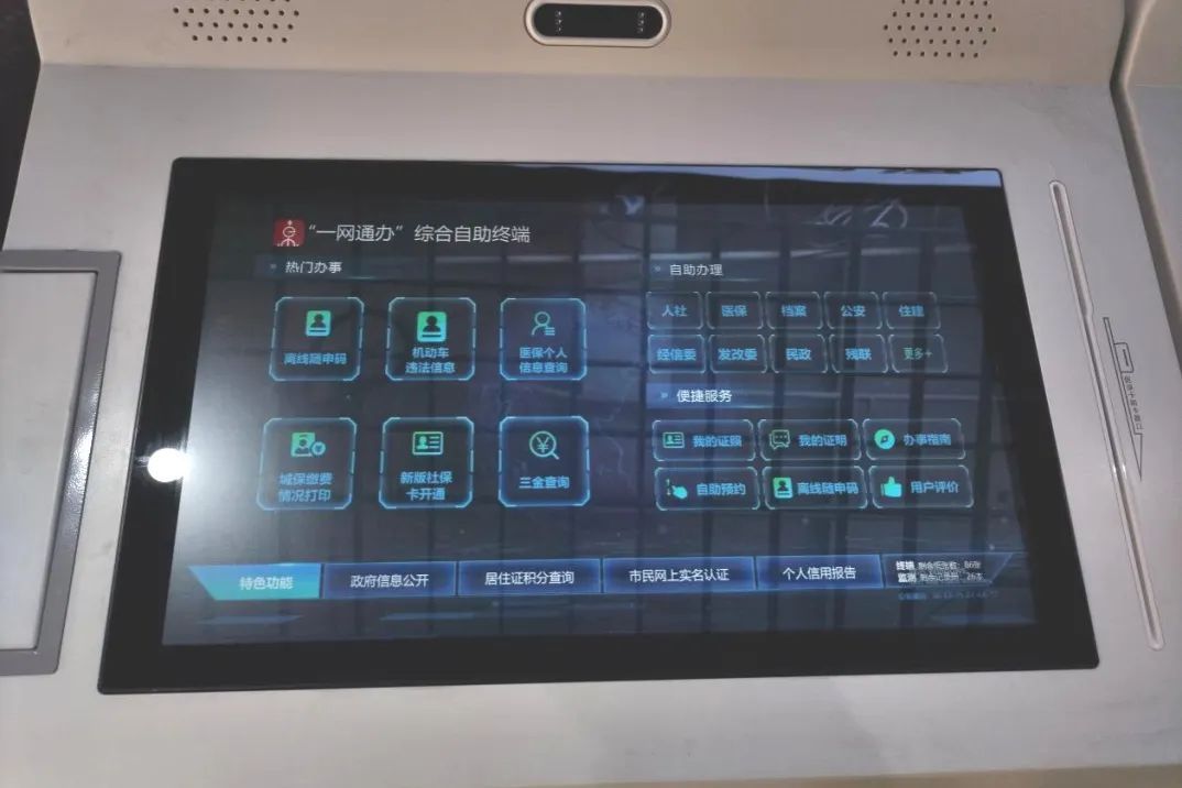 “一网通办”综合自助终端机可以办理档案、公安、人社、医保等多个服务事项,尤其是涉及办理医保个人信息查询、城保缴费情况打印、就医记录册更换等高频事项提供24小时自助“不打烊”服务,极大方便了附近居民和途径的上班族们在办理相关业务事项时实现随时随到随办。