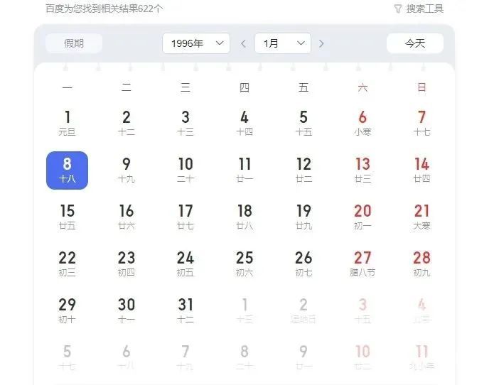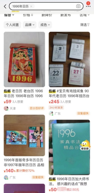 记者查询年历发现,这两年都是闰年,且元旦同为星期一。很多网友发现了这一现象,一时掀起了淘1996年旧日历的热潮。