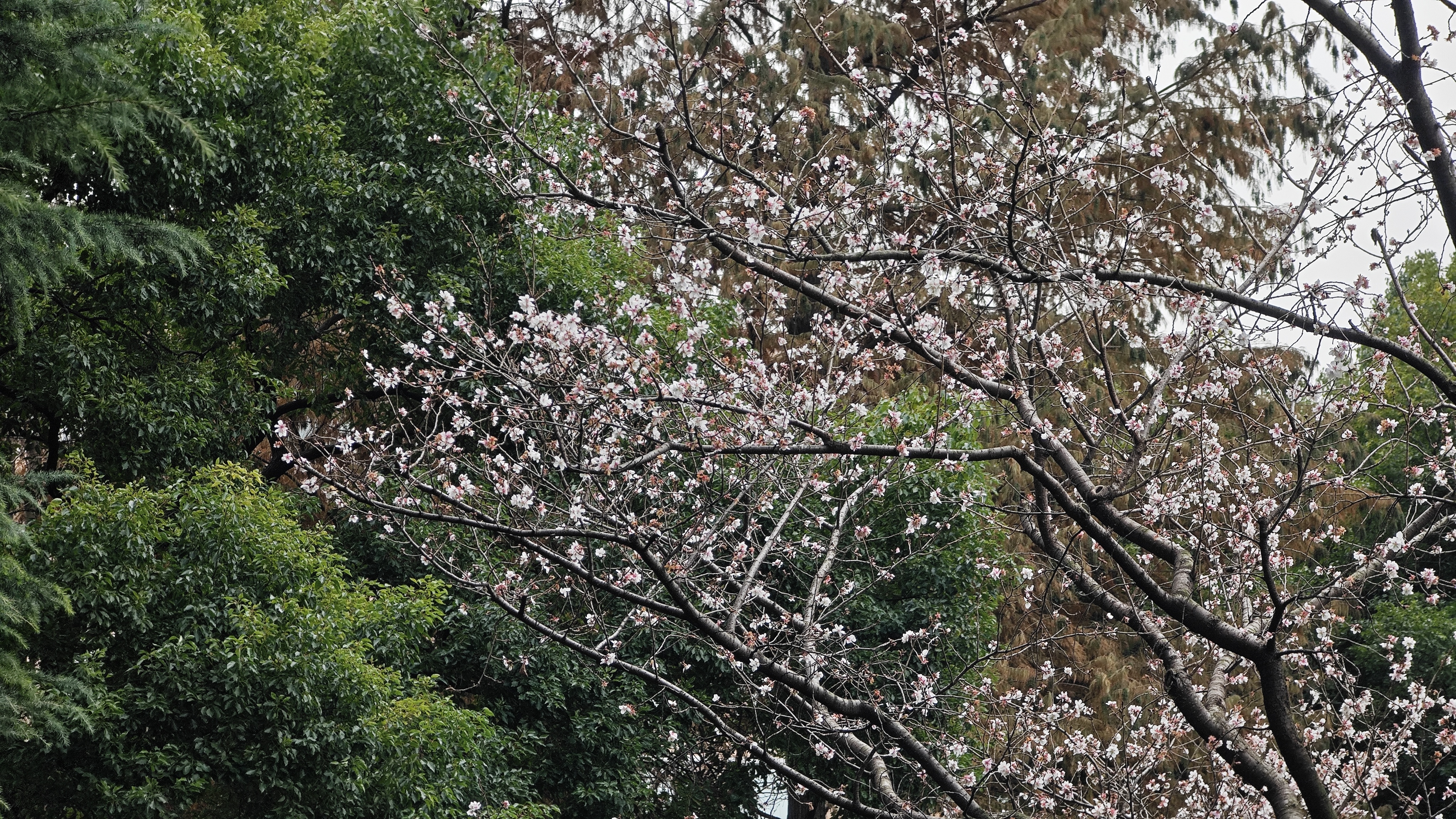 冬樱的花期一般从9至10月陆续开放至12月,并于次年3月底绽放第二轮花期。但由于2023年上海夏秋季温度偏高且雨水较少,樱花的落叶季明显延后,这也使得樱花的花期姗姗来迟。