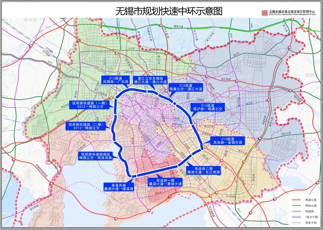 随着快速中环成环成势,由钱荣快速路—高浪快速路与312国道形成的中环将构建东接苏州、西至常州的快速通道,市域之间的快速衔接更加便捷,同时,也为远期规划外环和市域快速通道建设打下基础。