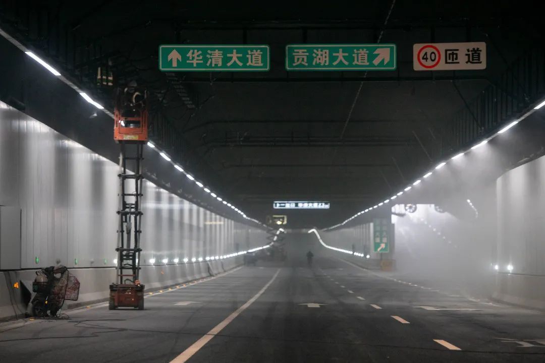 记者和市民观察员驱车驶入隧道,经过学府立交互通,正式转入高浪路隧道,视野一下打开,4.5米净高隧道十分大气,感觉像是在空间开阔的地面上行驶,舒适指数满格。
