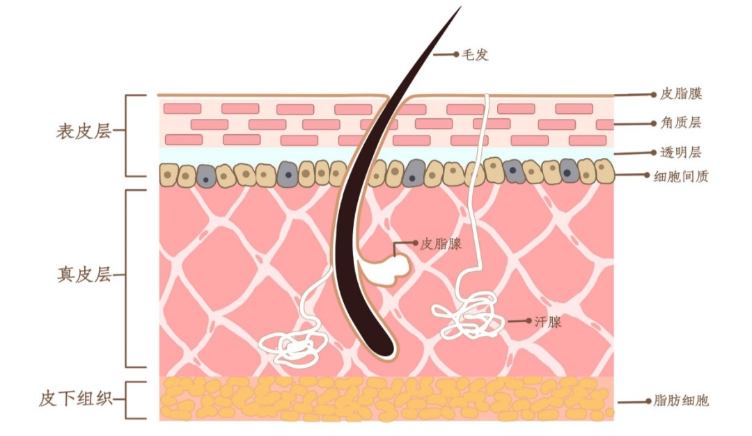 我们的皮肤分为表皮、真皮、皮下脂肪,表皮的最外层为角质层,角质层本身含有保湿成分,具有吸水、屏障功能,能够维持皮肤的湿润。由于冬季寒冷干燥,皮肤血管收缩,分泌功能下降,导致角质层脱落,皮肤屏障功能受损,对内无法锁住水分,对外无法抵御微生物及化学物的侵袭,从而导致皮肤干痒。