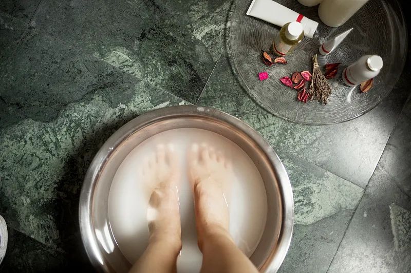 首先,要注意热水的温度,40摄氏度左右即可,太高会破坏足部皮肤表面的皮脂膜,造成皲裂。