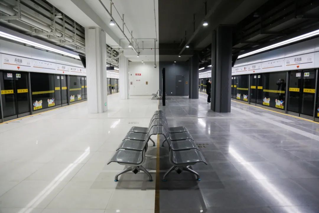 地铁18号线丹阳路站用色非常简洁,只有黑白两色,代表了“今”与“昔”。无论站厅,还是站台,均以中心线一分为二。