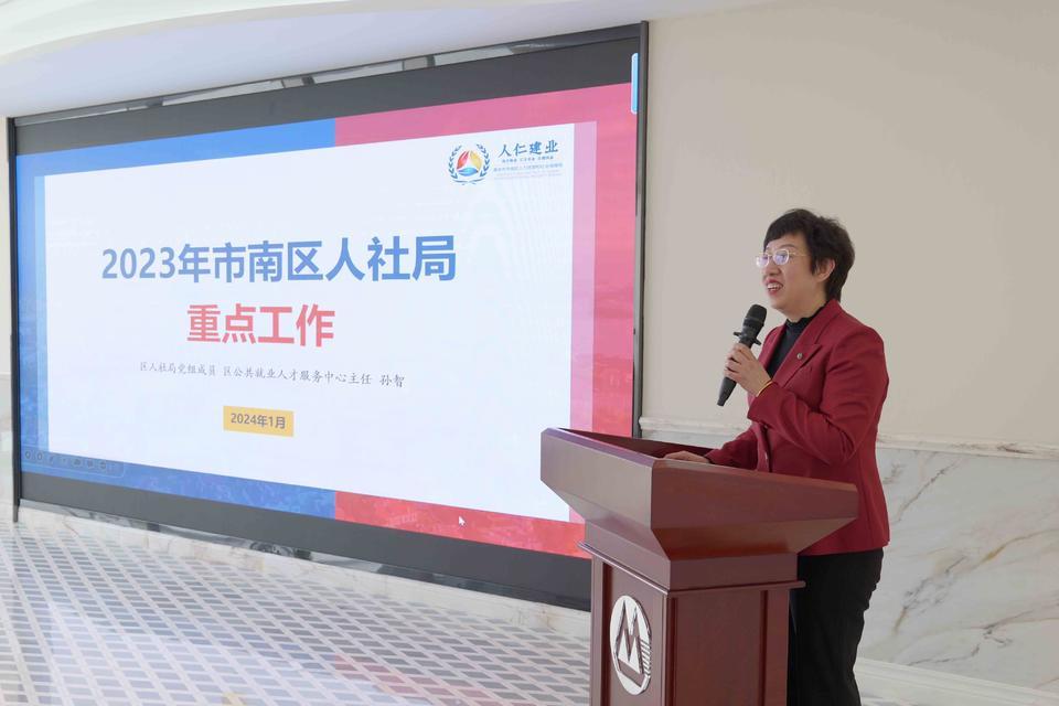 活动中,市南区区公共就业和人才服务中心主任孙智代表市南区人社局向到场嘉宾做2023年重点工作汇报,对2024年行业创新发展、做优做强人力资源服务品牌,建立稳定人力资源服务战略合作机制等提出建设构想。