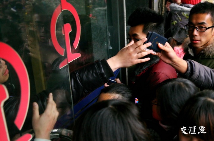 2011年12月28日,众多学生在南京建宁路火车票代售点排起长队等待购票。当日,2012年春运学生票发售。据悉,2012年春运学生票可通过电话订票、互联网购票,或到指定售票窗口购买春运期间任意一天的学生车票。王岩棣 摄 视觉江苏网供图