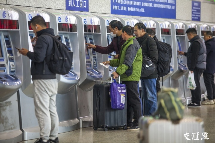 2024年1月12日,旅客在南京南站购买火车票。孙忠南摄 视觉江苏网供图