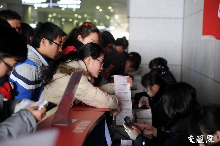 开售春运车票当日,南京火车站新增加10个临时售票窗口,使站区内售票窗口达100多个,有效避免了旅客排长队现象。王岩棣摄 视觉江苏网供图
