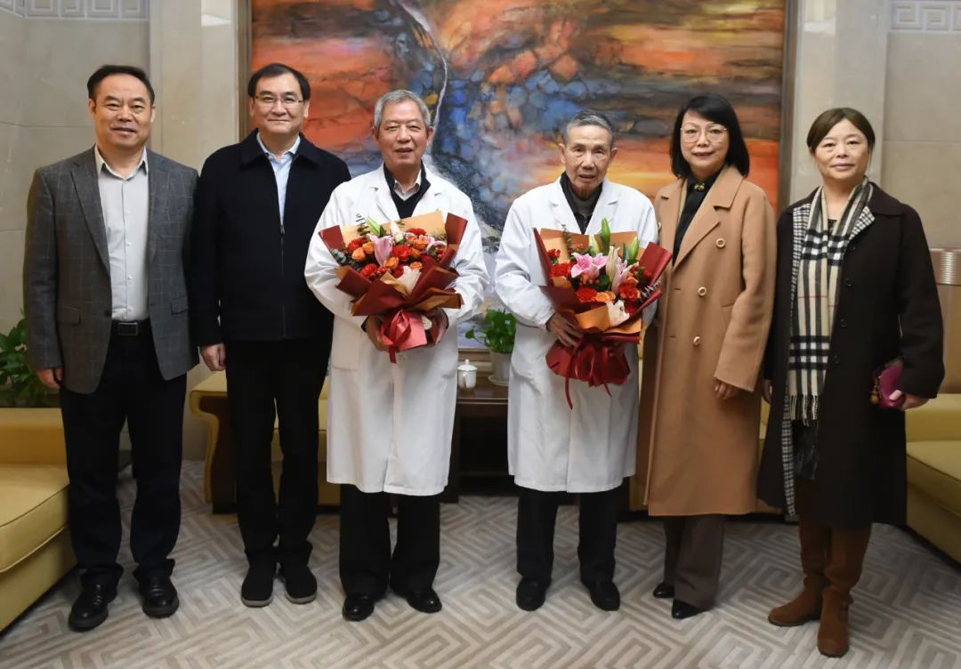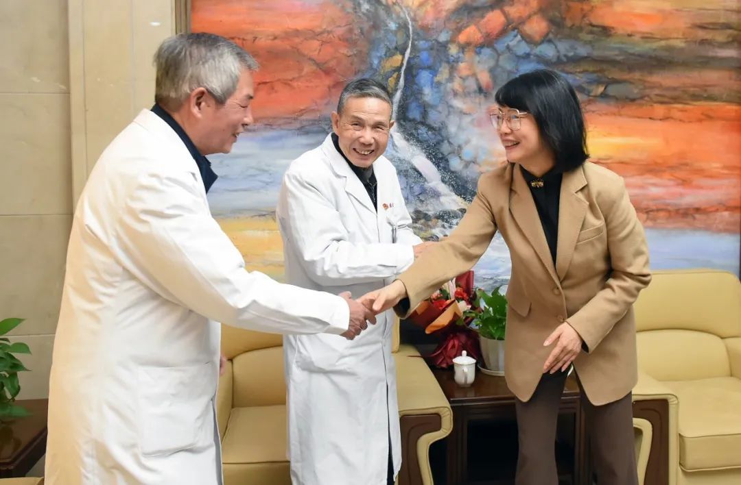 “刘教授、陆教授,提前祝你们春节快乐,你们是我们大家的榜样!”来到龙华医院,黄红第一时间向劳模工匠献上鲜花,向两位老教授坚守临床一线表示敬意。