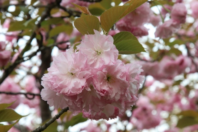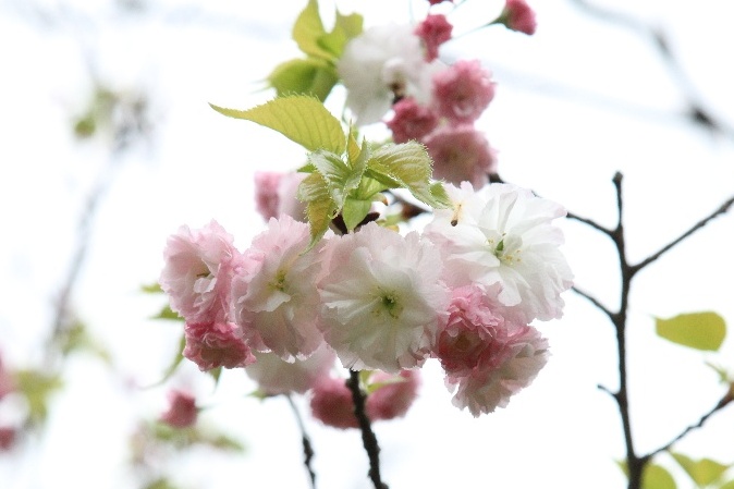 重瓣-‘松月’樱-花叶同放