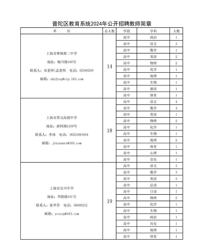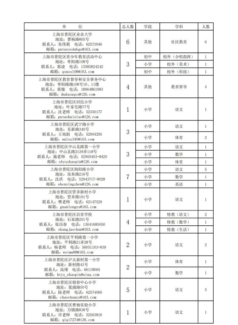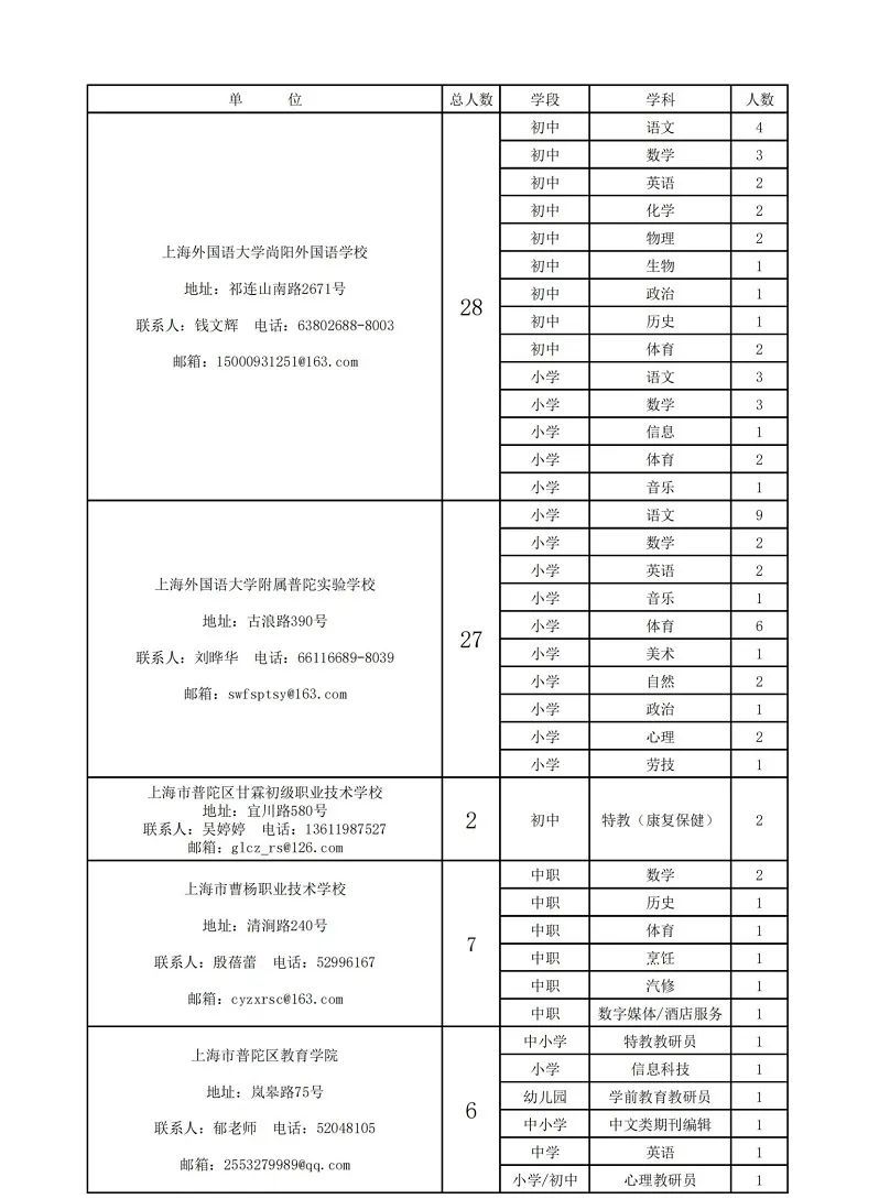 市教委介绍,普陀区教育系统2024年76个事业单位公开招聘525名教师,包括语数外、物理、化学、政治、体育等学科。符合招聘条件的人员,均可向相关招聘单位报名应聘。详见↓