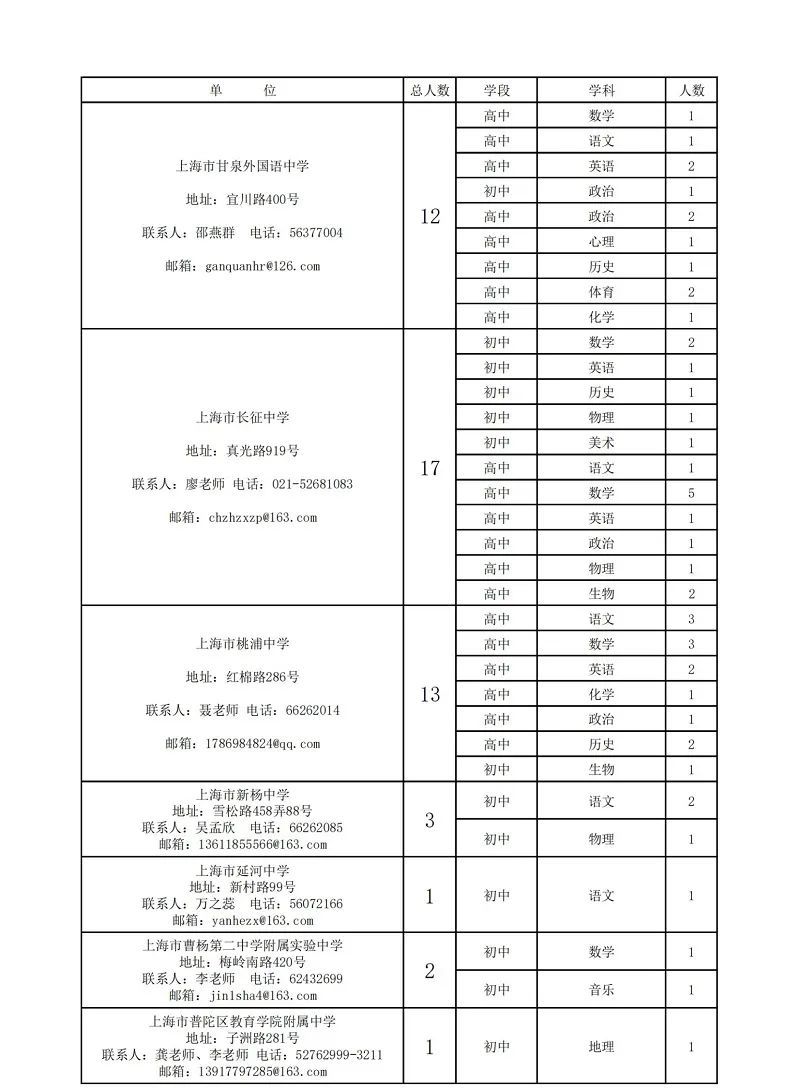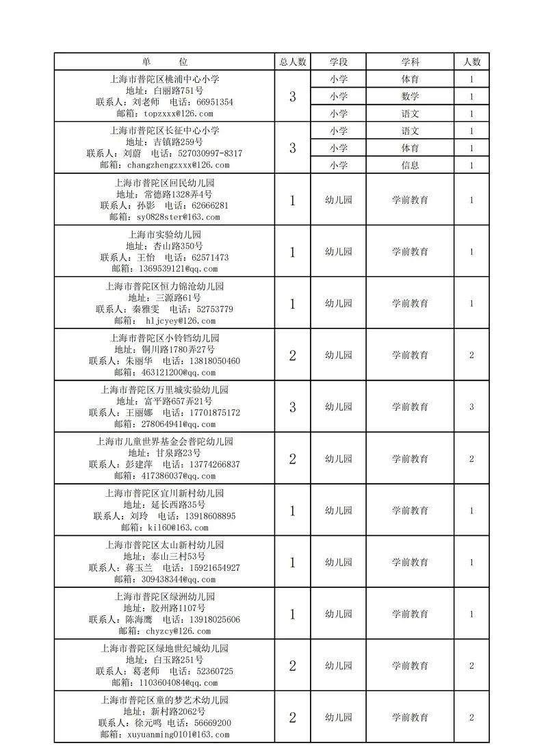 五、将拟聘用人员在“上海普陀•教育局”网上公示5个工作日。