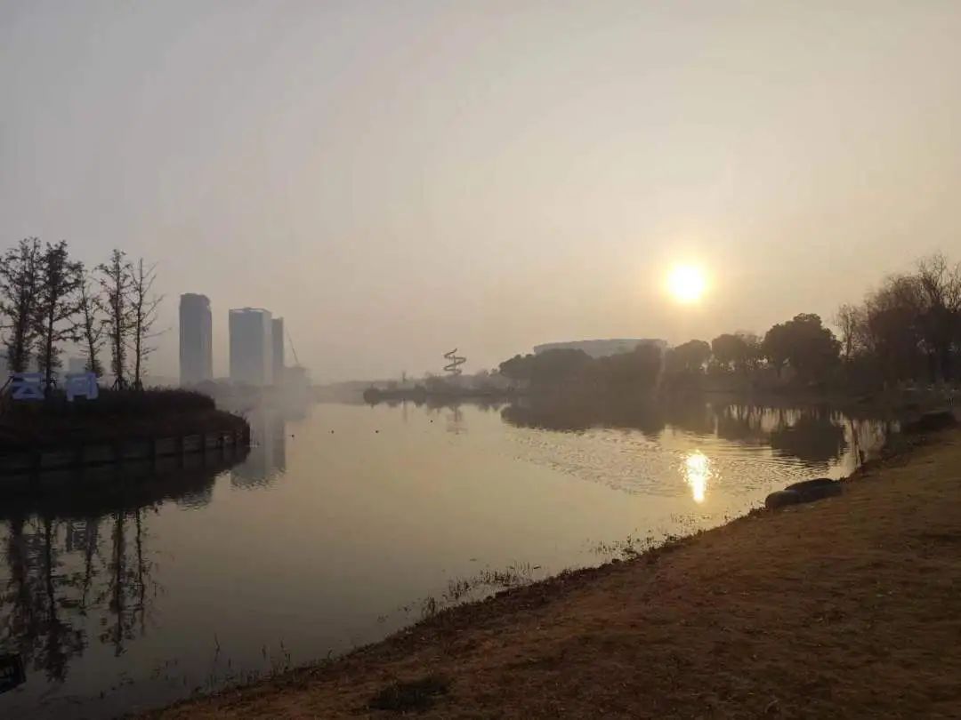 早上8点,记者在五龙湖公园看到,湖水之上水雾氤氲,远处的景象也若隐若现。虽然是双休日,但平时热闹的公园略显冷清,只有少数跑步发烧友无惧空气污染坚持前来锻炼。