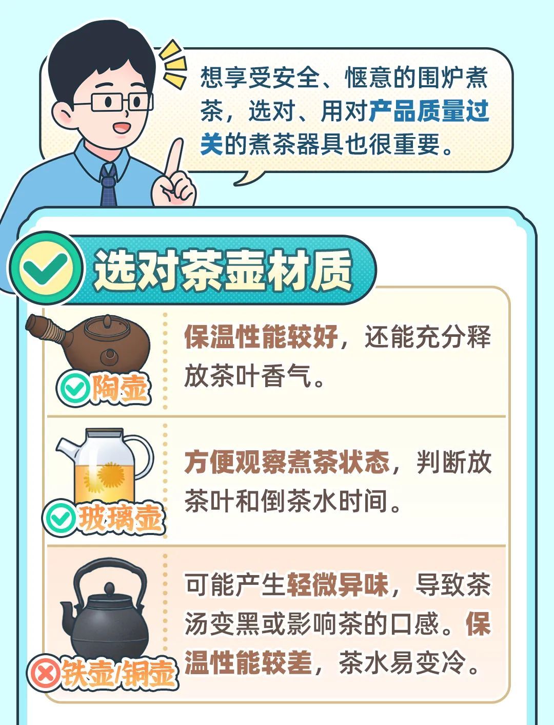 到了冬日,浪漫又松弛的围炉煮茶又“火”了!一炉一茶,三两好友,氛围拉满……但在享受温暖茶香的背后,可能隐藏危险。煮茶炉具、煮茶器具怎么选?食材如何正确烘烤?一起来看看市市场监管局的科普吧↓
