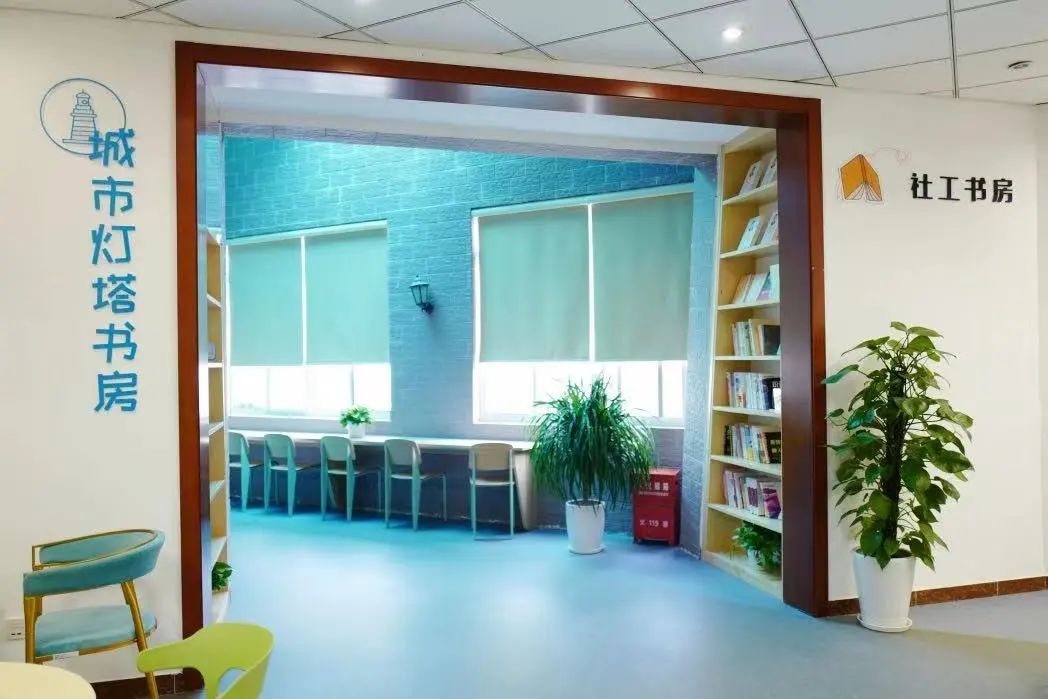 为了不断提高社区工作者基层治理能力,扩充社区工作者的专业知识和方法技能,康健街道社工站结合长寿党群服务中心建设,因地制宜,在原有灯塔书房的基础上丰富书籍种类,优化书房布局,辟出专门区域设置“社工书房”,打造小而精的社工“能量充电站”。