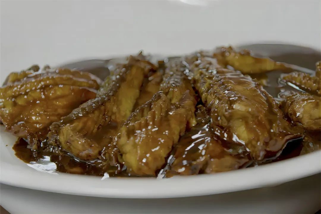 色泽红润有光泽,肉质鲜嫩肥檽,卤汁紧包,入味可口。