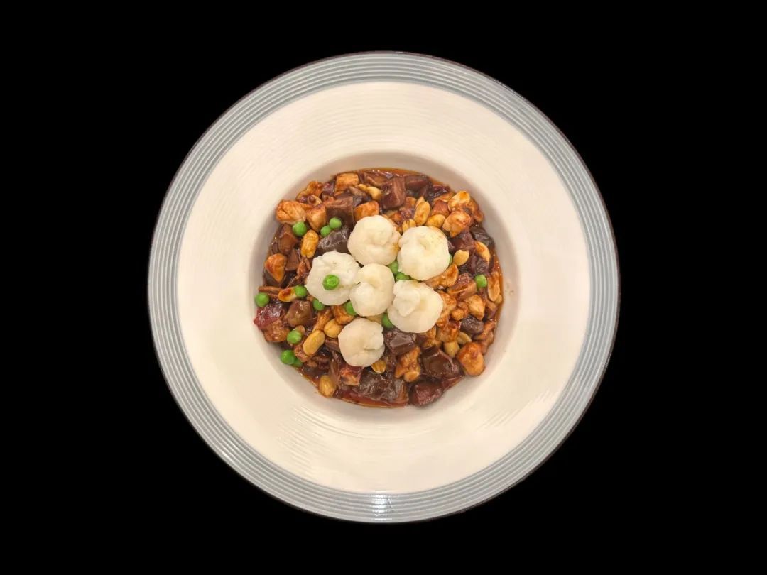 色泽深红,配料多样,鲜香微辣,咸中带甜。