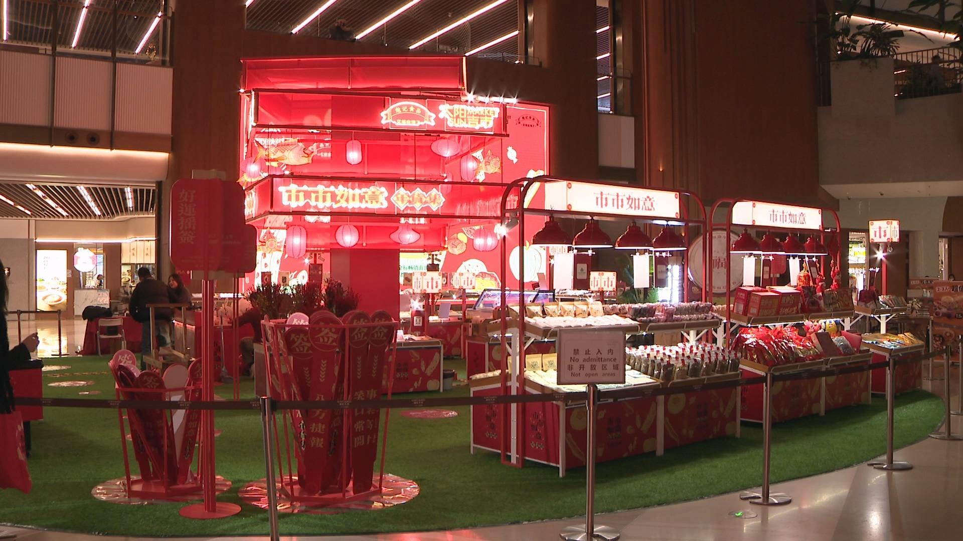 现在离春节已经不足一个月,沪上各种迎新活动也在热闹登场。在瑞虹天地,从1月13日开始,“市市如意年货集”在太阳宫五楼中庭正式对外开放迎接市民游客。今年年货集以多元化的中国春节传统美味开启饕餮盛宴,带来全国金标畅销的100多款产品。主办方希望通过近百场年俗活动打造全家人过节的良好氛围。