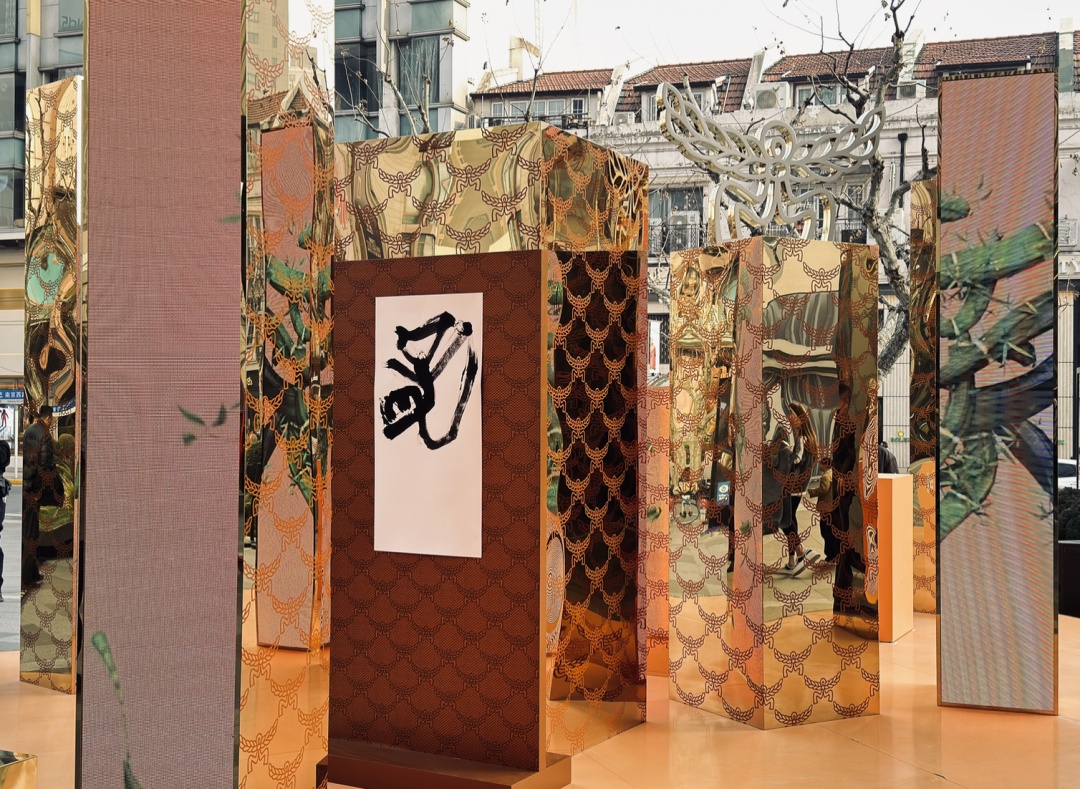 据悉,MCM此次携手国家级文化传承人、艺术策展人韩朝教授,共同创作“震鳞九子”创艺空间。整个空间内饰运用书法艺术为灵感,结合众多中国传统文化,同时融入MCM品牌元素和现代美学风格。空间中心位置陈列有巨幅“天书”艺术装置,由陶艺世家钞氏兄弟创作,每片陶片上均绘有抽象的图腾和文字,透过陶瓷特有的质地传递古今流变之美。