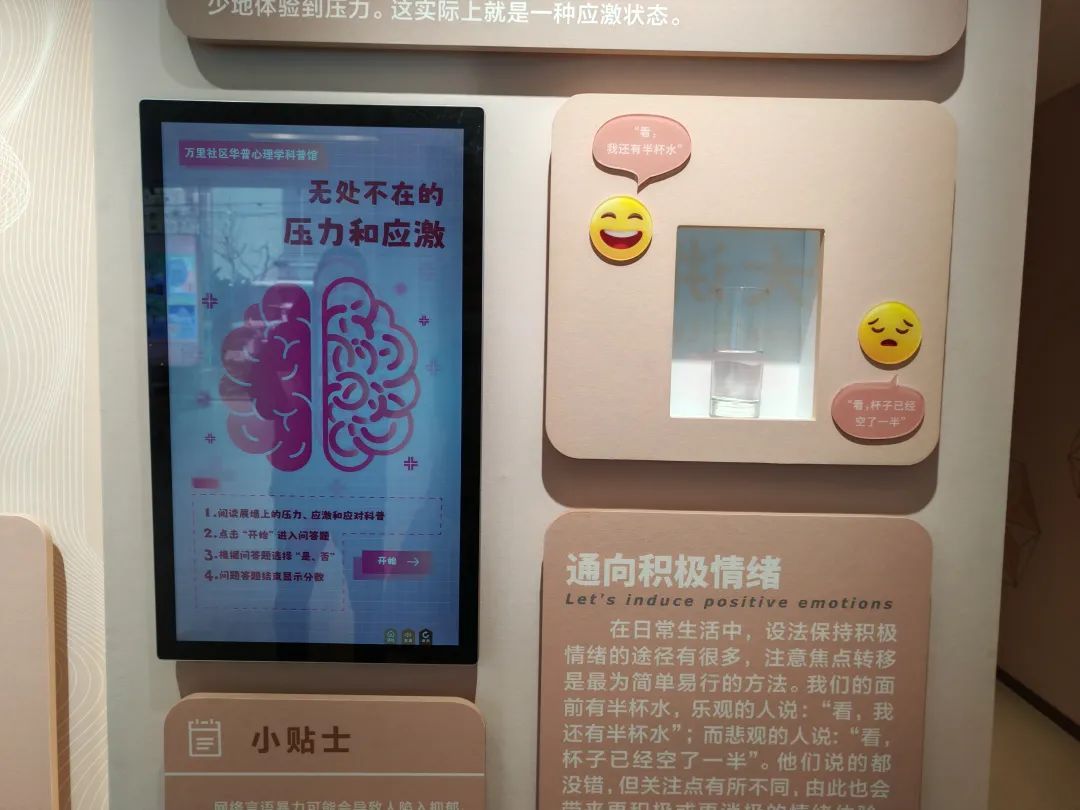 烦恼是怎么来的、人为什么会害怕、什么是自我意识……这些常见的问题,其实都有一个共同的“源头”:心理。但大部分人都无法说清心理活动或问题是怎么来的。如何把专业的心理学知识转化成普通大众看得懂、学得会、用得上的科普知识?普陀区万里街道在深化“万里无忧”心理健康品牌建设中,与华东师范大学心理学院合作共建,打造了全市首个沉浸式心理科普展馆——“万里无忧”体验空间。目前,展馆已完成施工,即将对外开放。