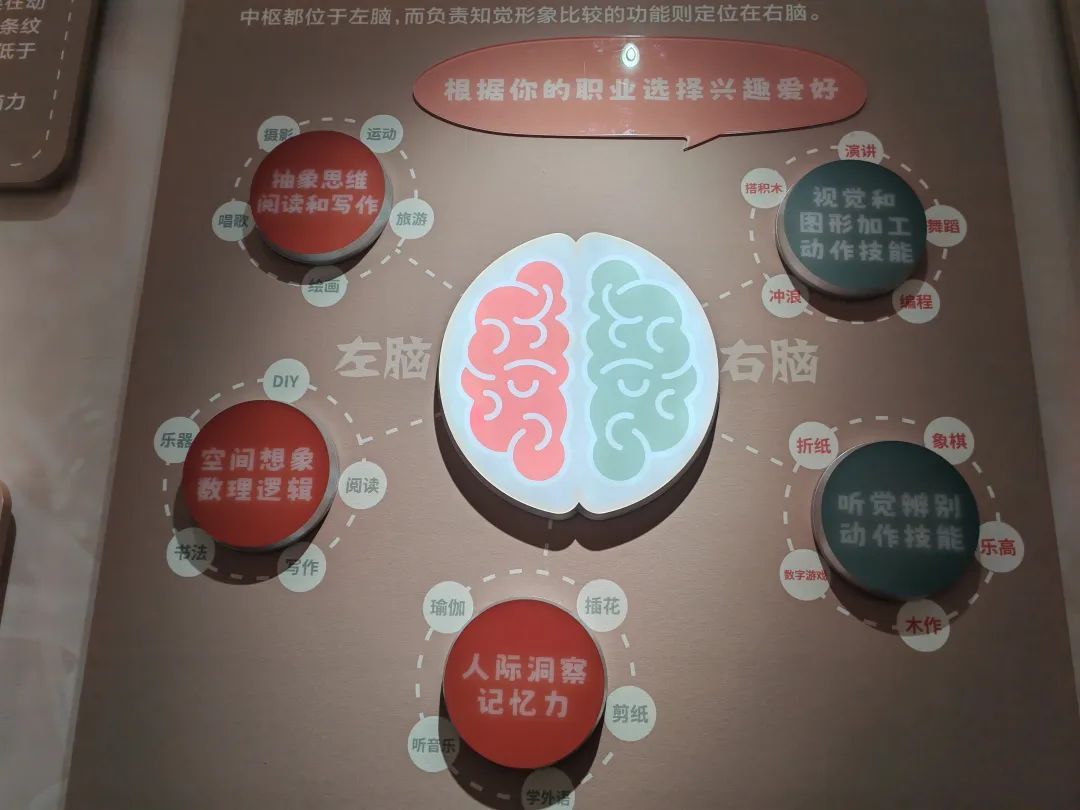 展区内还规划了中央公共活动区,未来这里可以承办各类讲座、科普课堂、参观者交流学习的区域。在临展区域,已经上新了“心理学与生活”科普展。林勇告诉记者,展区内的展板都设计成了可拆卸、移动的展板,方便日后进行巡展。