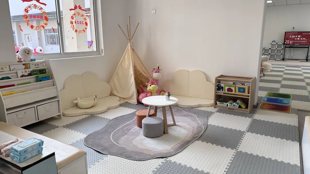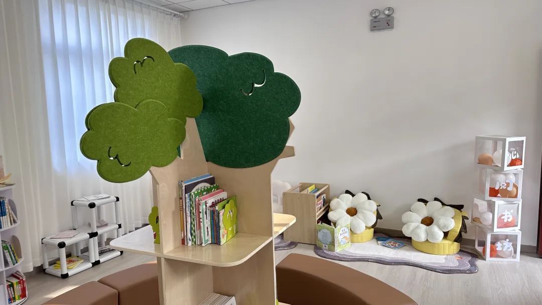 “以前的老校区在居民区内,活动场地比较小。搬来新校区以后,活动室数量增加,能为亲子家庭带来更好的体验感。”崇明早教中心教师施柳遐说。