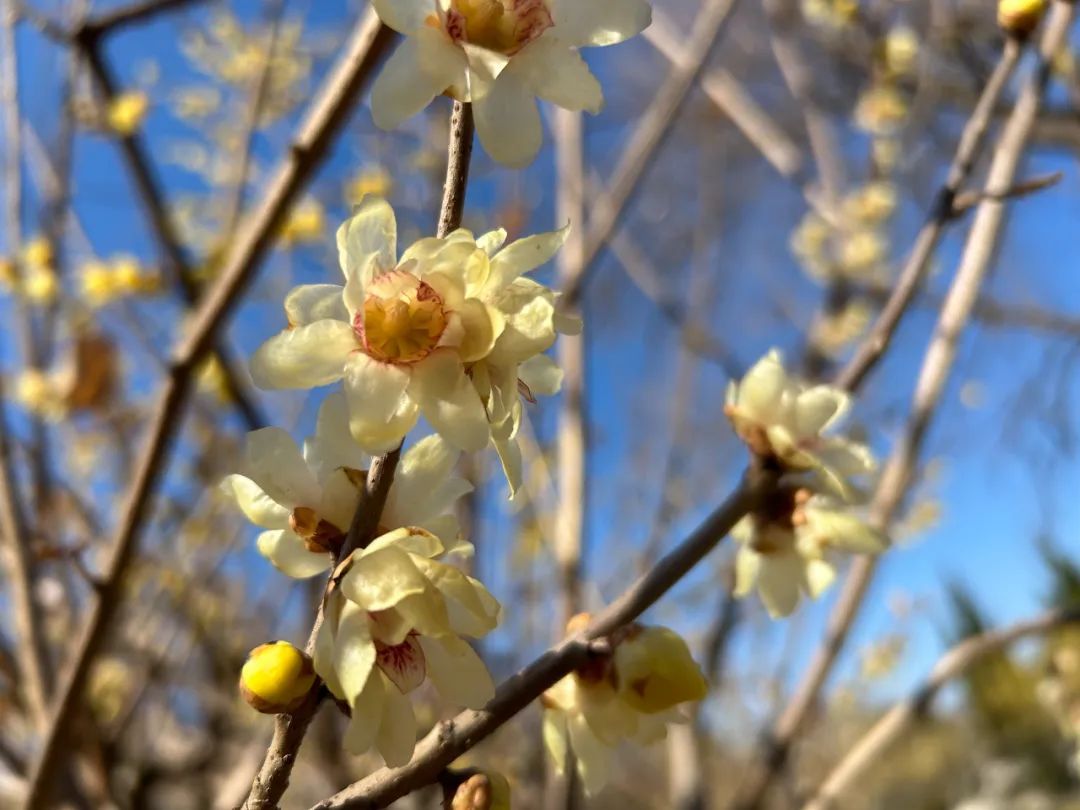 1月15日上午,记者来到嘉定区蜡梅种质资源圃,远远就能闻到阵阵花香。走近细看,一朵朵黄色的小花挂满枝头,有的展瓣吐蕊,有的含苞待放,亮黄色的花瓣如晶莹的琥珀,散发出淡淡清香。