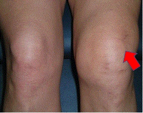 膝关节肿胀:通常是最明显的表现,当膝关节积液过多时,髌骨囊出现明显肿胀,可看到皮肤表面有隆起,按压髌骨可感受关节内有液体流动。