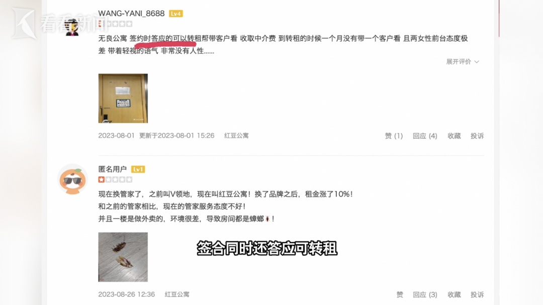 记者还注意到,有网友反映,这家公寓在2023年,运营方由微领地变更为红豆公寓,此后租金涨了10%,签合同时还答应可转租。