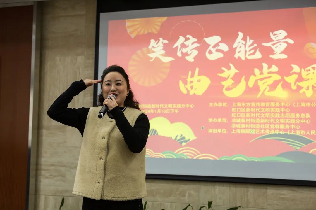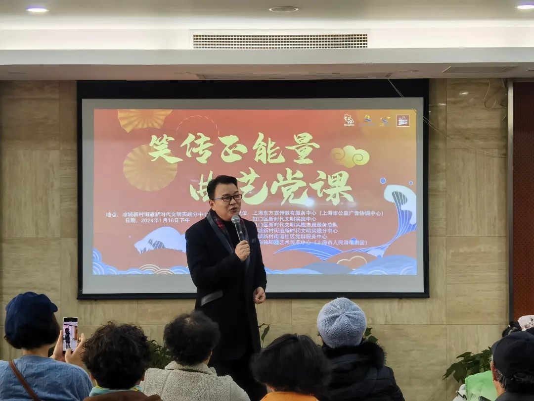 这场滑稽戏是凉城新村街道新时代文明实践分中心承接区新时代文明实践中心的“笑传正能量·曲艺党课”活动,让居民在欢乐中,感受社会大家庭的和谐和温暖。
