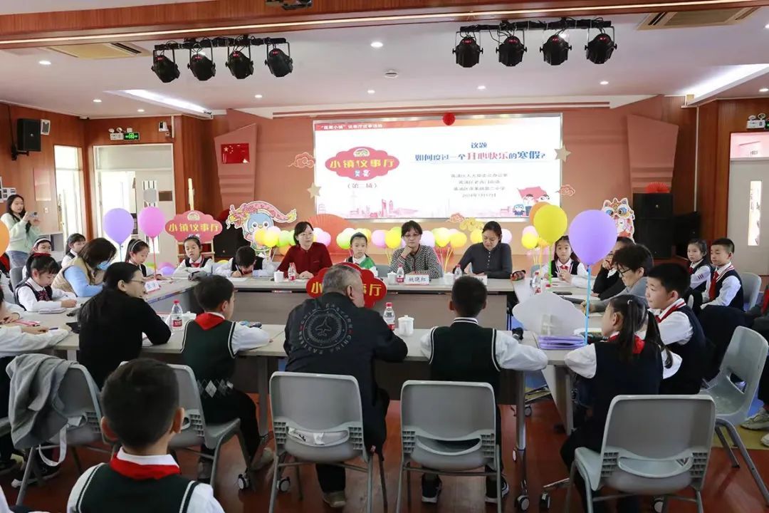 寒假开始前,黄浦区蓬莱路第二小学的“蓬莱小镇议事厅”于1月17日再度启动。围绕“如何度过一个开心快乐的寒假”这一议题,十多名二到五年级的学生和多位黄浦区人大代表坐到一起畅所欲言,从各自的视角对即将到来的寒假提出科学合理的建议。“蓬莱小镇”是蓬莱路二小创建十年的校本特色课程,该课程把学校打造成一个小社会,让学生变身小镇镇民,在小社会情境中体验、探究和发现。去年11月,“蓬莱小镇”人大代表联络站在学校建立。在新一届“蓬莱小镇”小镇长的倡议下,学校同步设立了“小镇议事厅”——一个由小镇民集体民主讨论协商决策小镇大事小事的平台。每次活动,孩子们可以就一个议题展开交流讨论,提出有关议题的现象问题,集体建言献策。