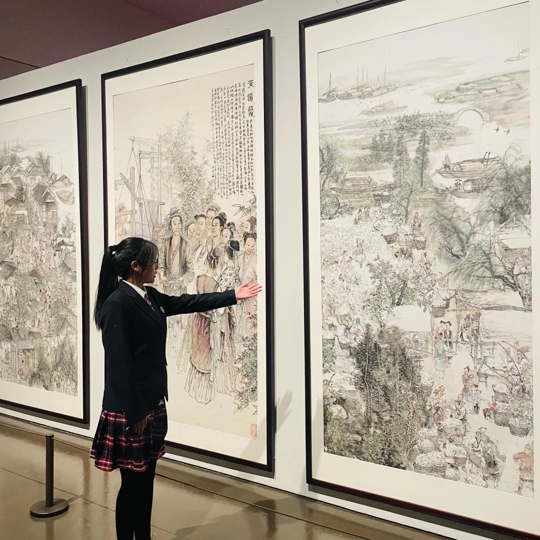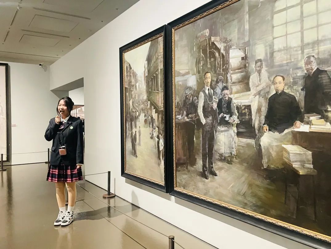 结合海派文化的“寻根之旅”主题,同学们在志愿者讲解员的带领下参观了馆内常设展“美术作品中的上海”,展出作品丰富的内容涵盖了历史、思政、科学、文学等学科,使同学们能接收更直观、更多元的知识。