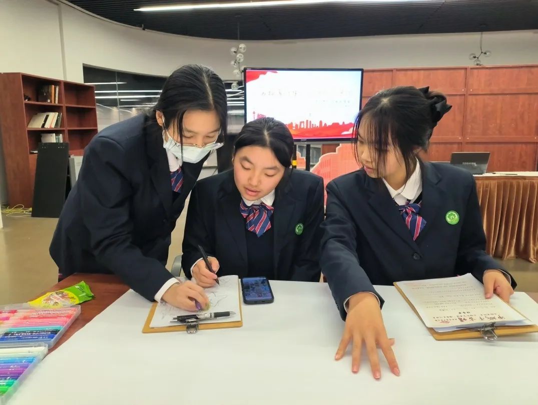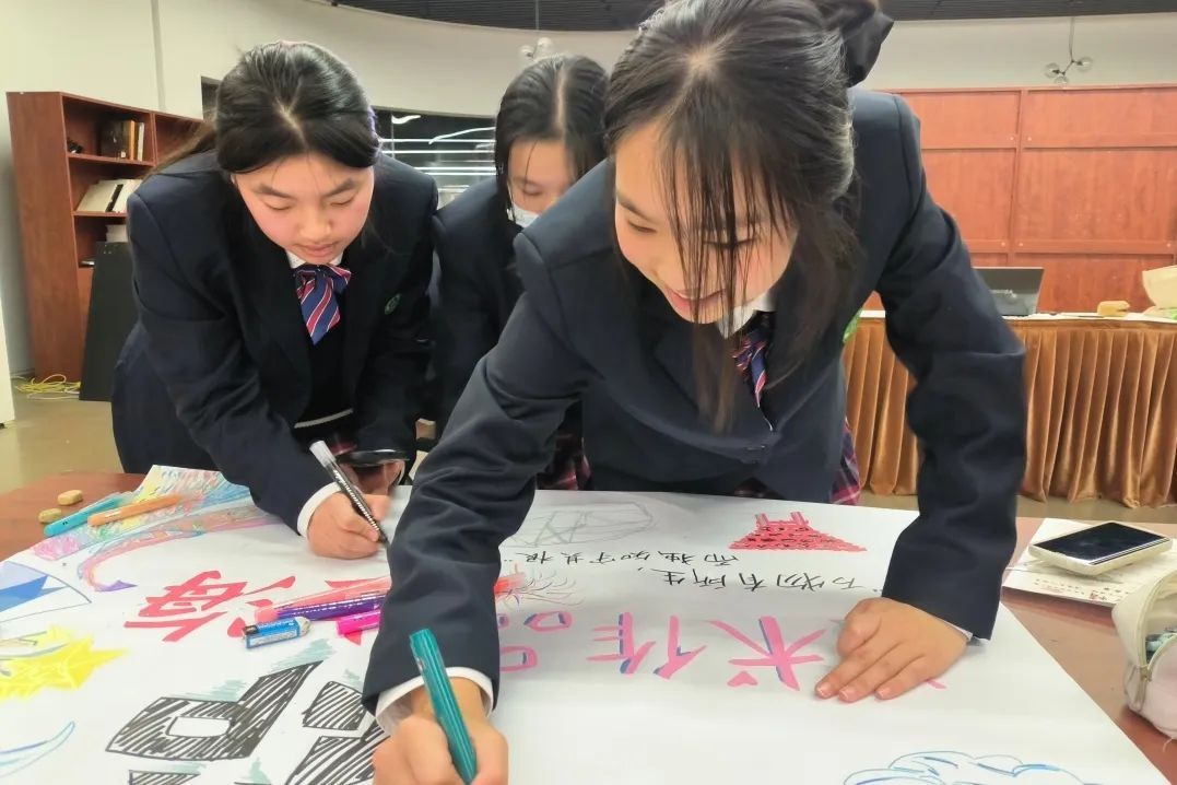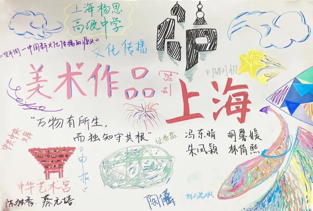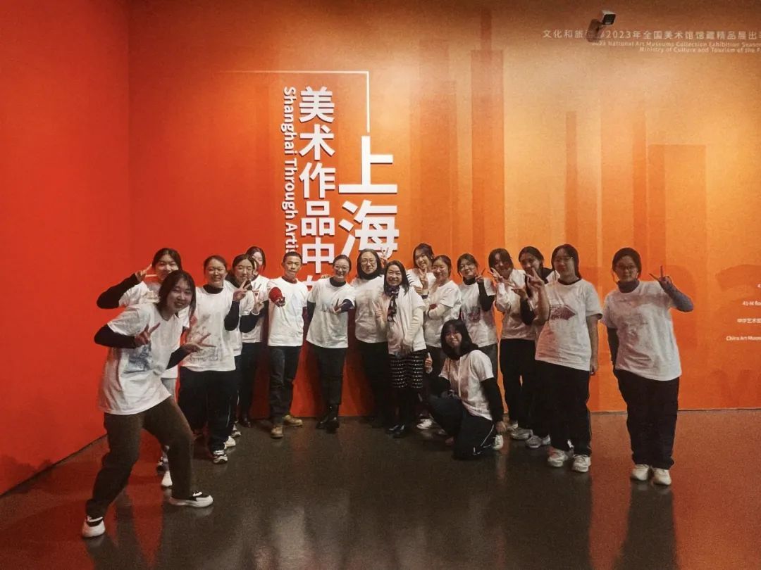 同学们通过沉浸式、近距离欣赏大师原作,从中获得了独特的体验,并将这些体验和所收集的灵感提取出来,转化为充满生命力的作品。在中华艺术宫(上海美术馆)艺术沙龙里,同学们以小组形式现场创作了“寻根海派文化”大幅灵感版海报。