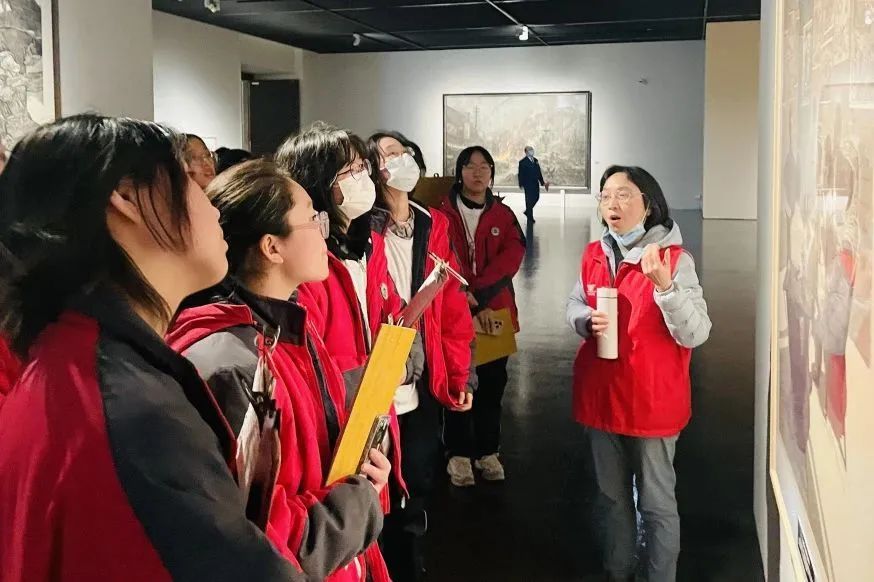 在前期学习调研和现场培训的基础上,同学们挑选了各自感兴趣的作品,在展厅中充当了一把小小讲解员,为现场观众介绍作品的艺术特点和历史故事,带大家进一步理解展览背后所蕴含的文化内涵。