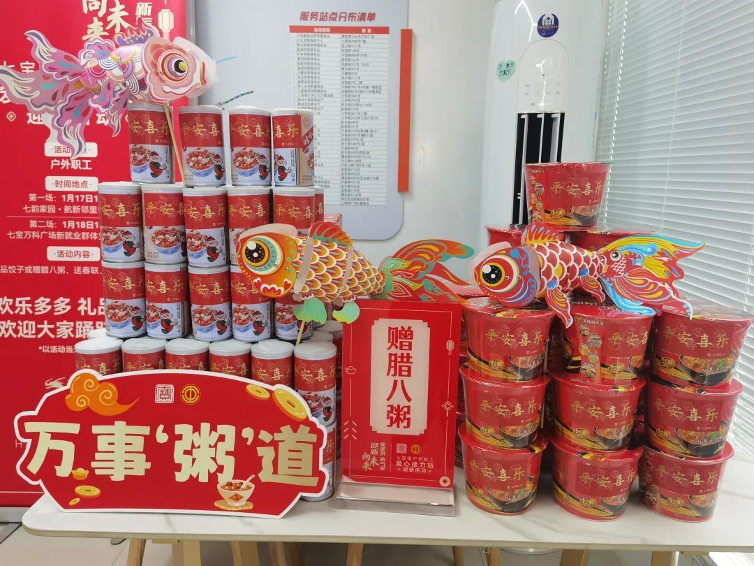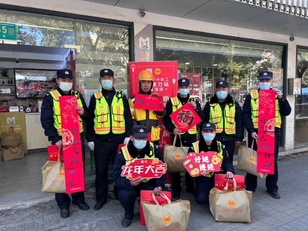 新春佳节来临之际,为了让户外职工们感受到浓厚、喜庆的节日气氛,缓解工作压力,1月17日—18日,在区总工会的指导下,七宝镇总工会联合镇综合党委,在七宝镇两处户外职工爱心接力站——七韵家园·航新邻里中心站、七宝万科广场新就业群体党群服务站,开展了“新愿景、新气象,迎新向未来”主题活动。