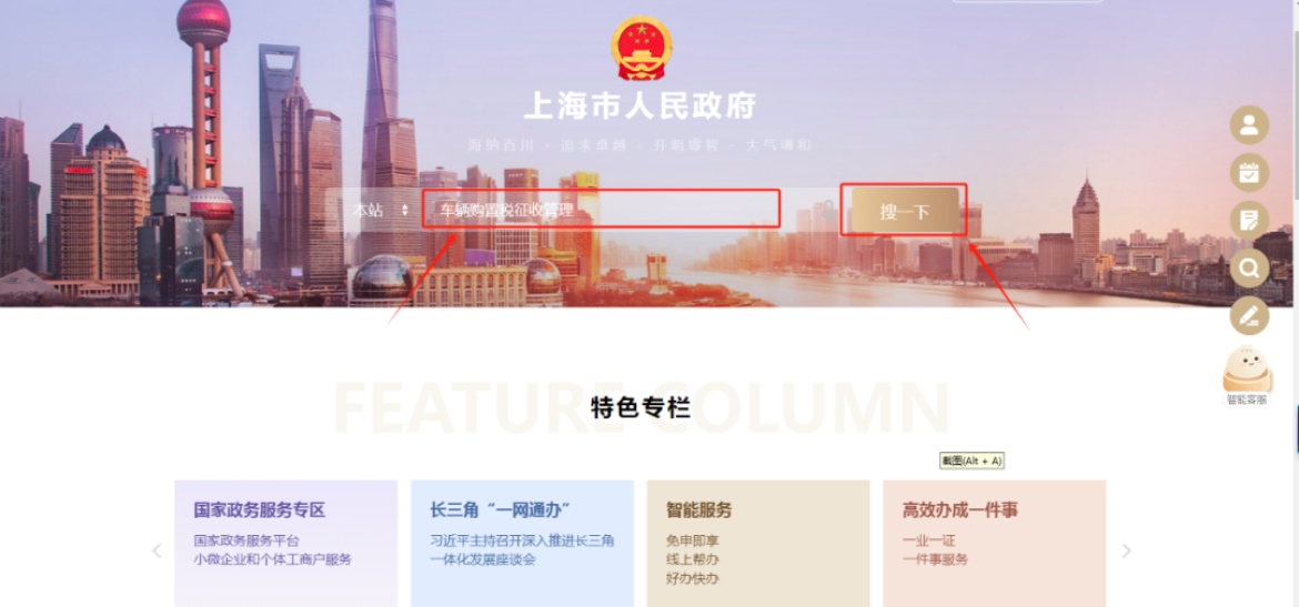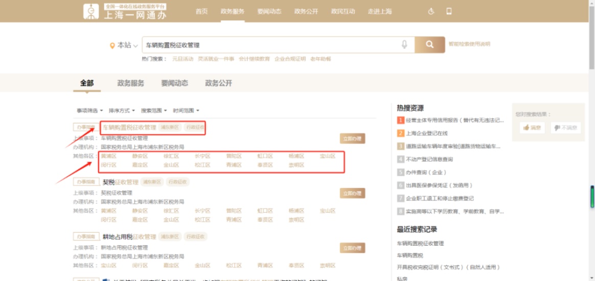 第一步,登录“一网通办”首页,搜索“车辆购置税征收管理”。