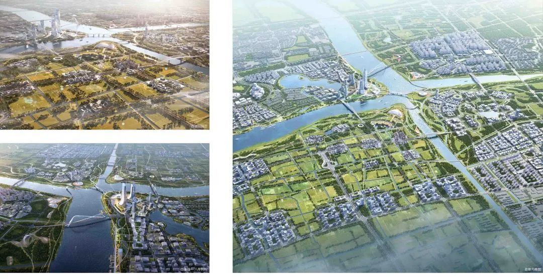 设计从三水交汇原点出发,四个象限与十字水道融合为一,依托一桥(未来桥)、二塔(未来孪生双塔)、三馆(科创触媒中心、永续农业展示馆与健康生活中心),构筑三水汇未来湾的核心形象。