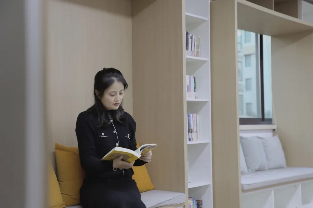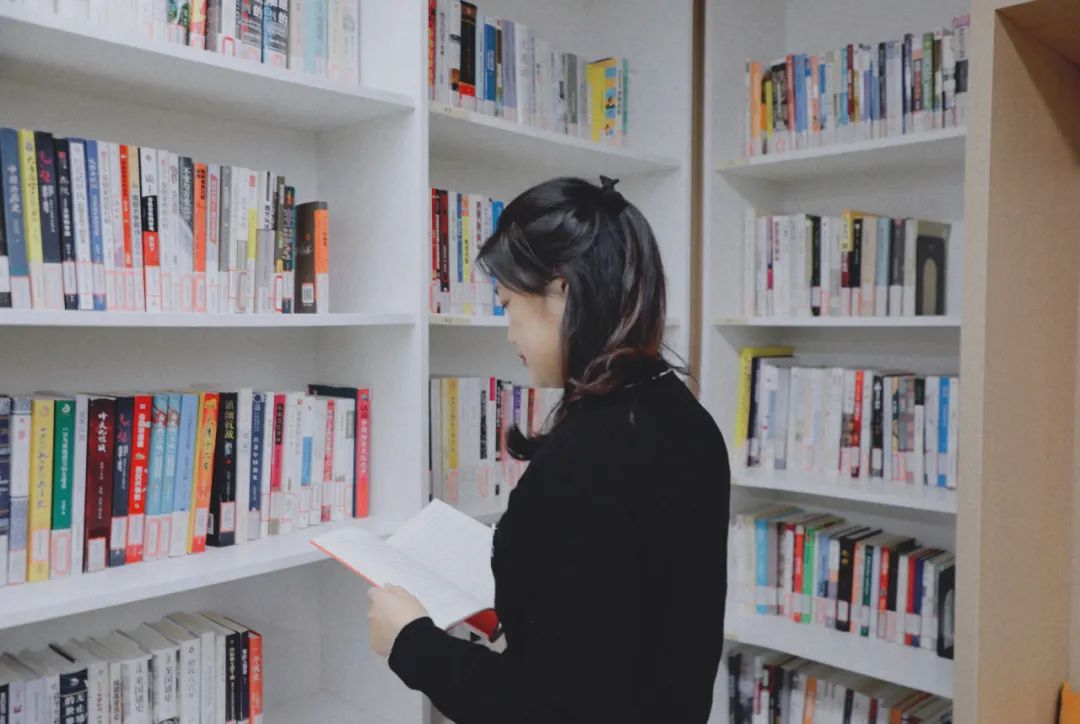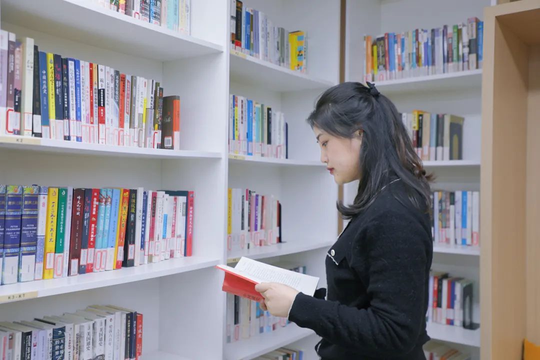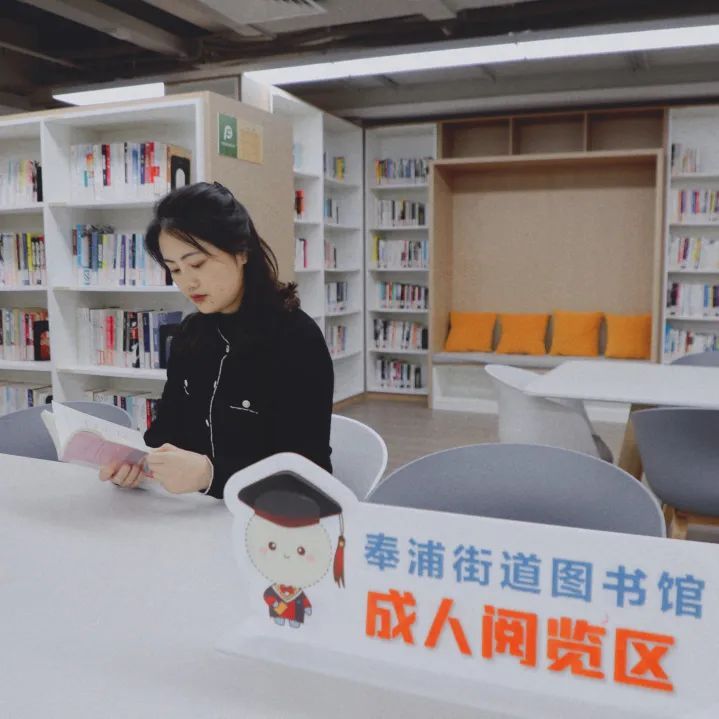 图书馆位于奉浦街道社区文化活动中心的3楼,偌大的窗户里,透进了万花筒般五颜六色的光芒,偶尔抬起头来,不甚刺眼的阳光,透过窗户照射进来,那一抹金黄,如同一首温暖的诗篇。